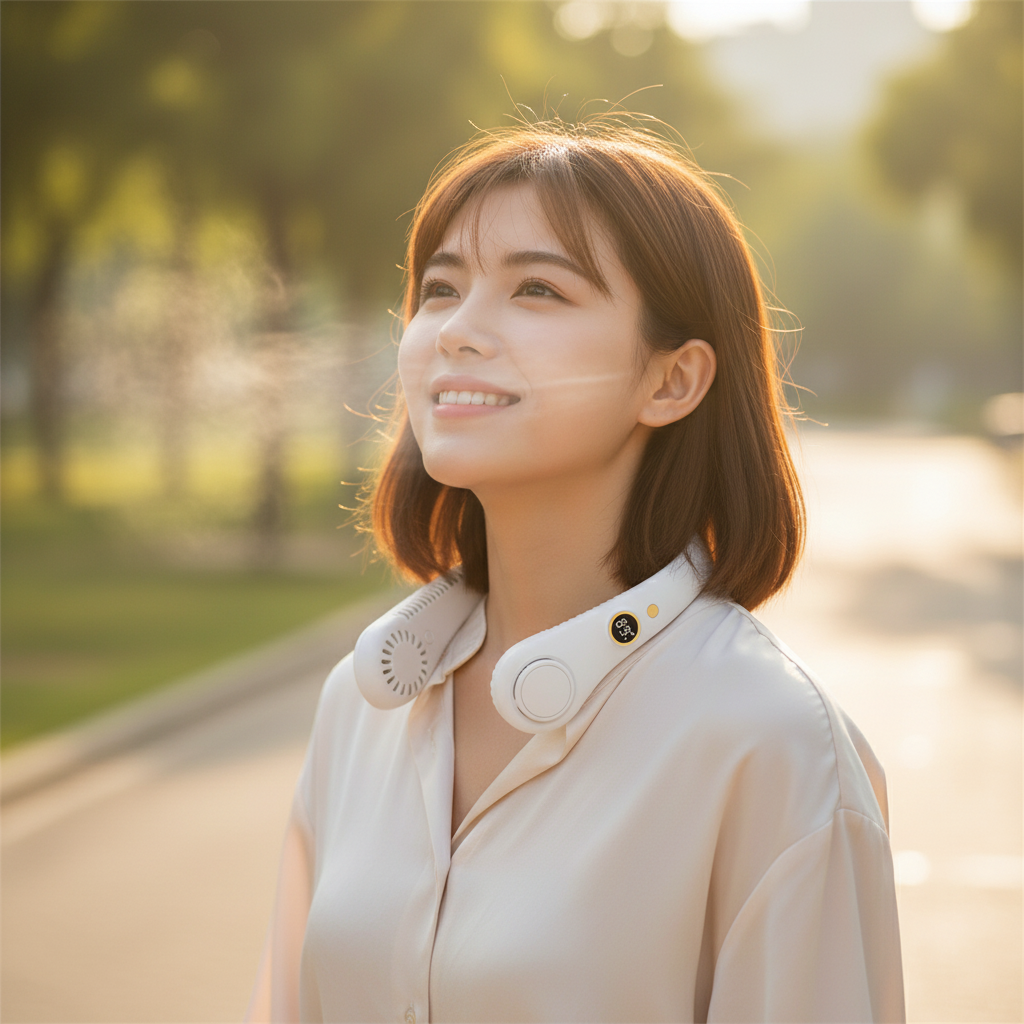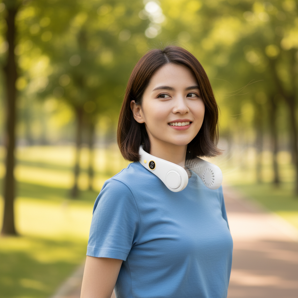 360° Surround Airflow Unlike traditional fans, this device features a surround air outlet system that blows air up, down, left, and right simultaneously. This "ice-cool" dual-drive engine provides full face and neck coverage to keep you refreshed and sweat-free.