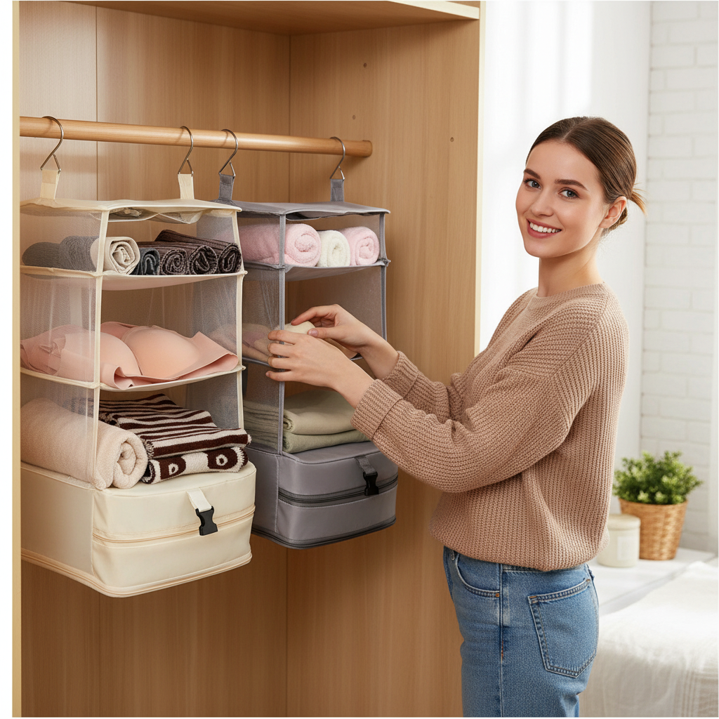 Maximize Space & Simplify Your Packing Transform your cluttered closet or chaotic suitcase into a neatly organized space with our versatile Hanging Wardrobe Organizer. Designed for efficiency and portability, this multi-functional storage solution is perfect for students in dorms, home organization, or travelers on the go.